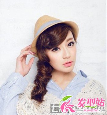 整个侧扎马尾的中长发造型具有女生无限的魅惑了,将卷发发型扎成一个螺旋卷马尾,随性自然,而且刘海的设计也是别具匠心,帽子的搭配又让整个造型有着英伦范呢!