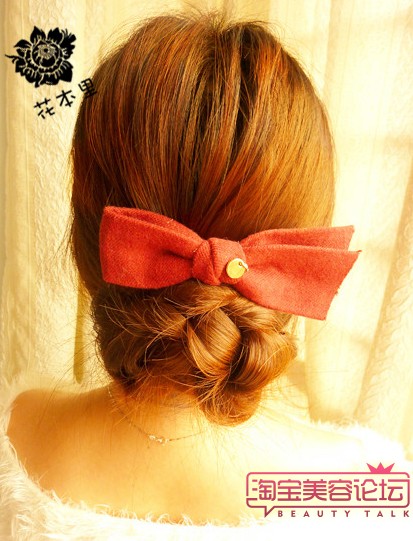 固定好之后就是这样一个发髻了。。最后带上好看的发饰就可以了。。还算可以吧